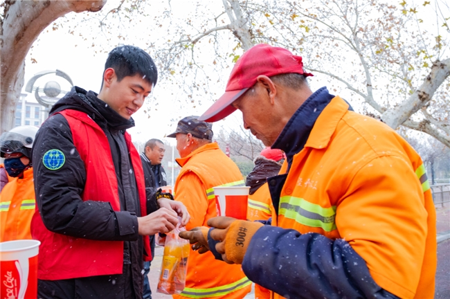 “趁热喝姜丝可乐,暖暖身子。”简单的问候伴随一杯杯精心准备的暖饮,送至环卫工人们稍作歇息的片刻。笑意在他们眼角漾开,一句朴实的“真暖和”,瞬间让寒冷的空气都变得柔和。我们深信,温暖从来都是双向的流动——你们温暖了这座城,我们也愿以微薄之力,温暖你们的手与心。